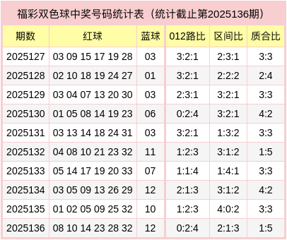 福彩双色球第2025136期奖号为:08、10、14、23、28、32+12。