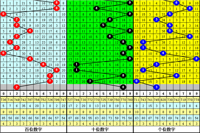 跨度分析:最近5期远隔开出跨度:5、5、7、2、7,本期驻扎跨度走小,参考跨度6。